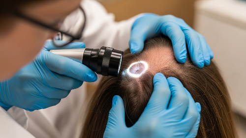 문진을 통해 얻은 정보를 기반으로, 의사는 시각적으로 확인할 수 있는 두피와 모발 상태를 보다 정밀하게 분석하기 위해 피부경 검사(dermoscopy) 또는 두피 확대 검사를 시행한다. 이 검사는 비침습적이며, 짧은 시간 내에 광학적 확대 장비를 통해 모발과 두피의 구조를 세밀하게 관찰할 수 있는 방법이다.